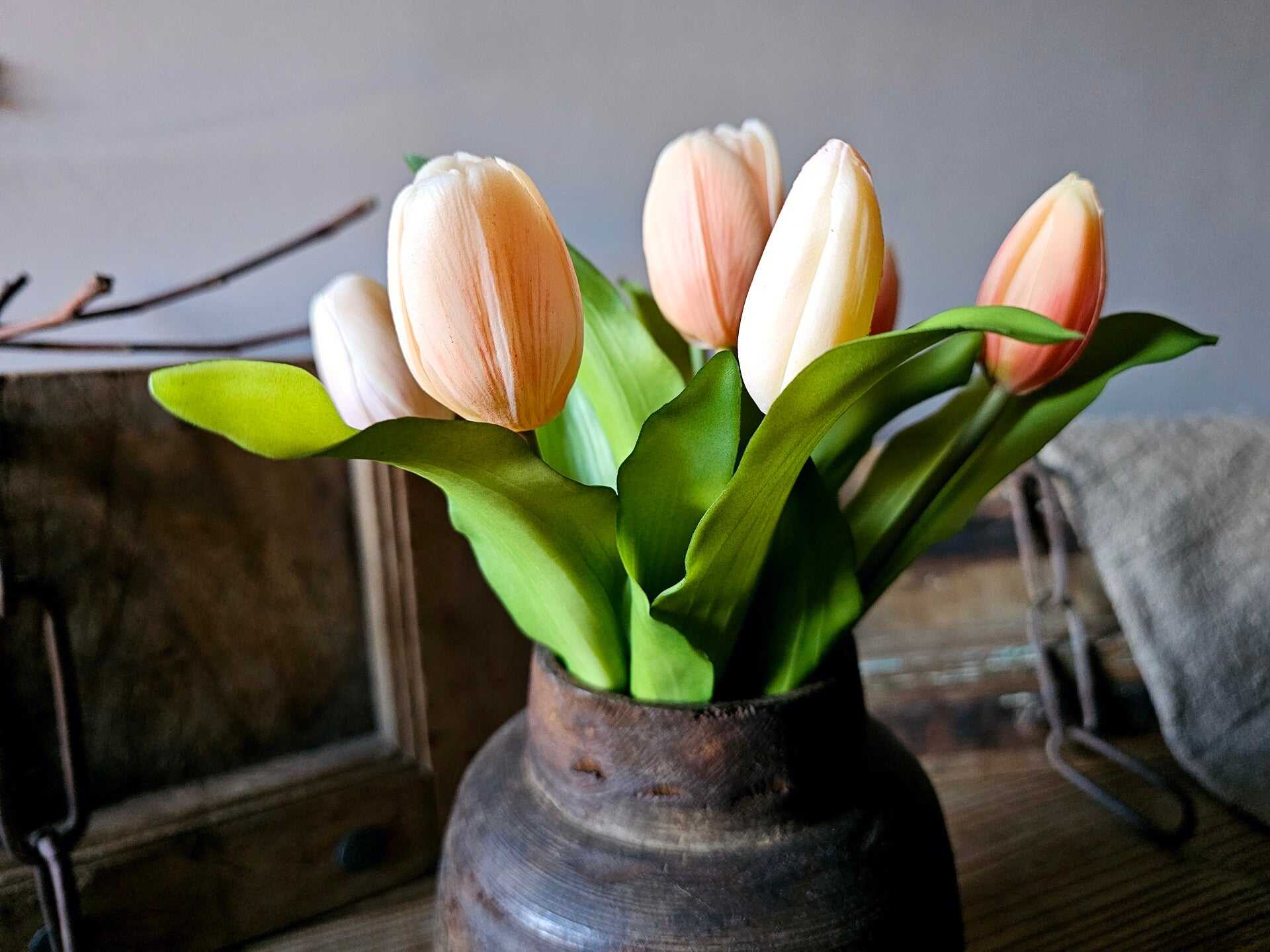 Prachtige bos kunst tulpen, 7 per bosje, 30 cm lang!Iets duurder dan een normale bos tulpen maar je hebt er je leven lang plezier van! Deze bos bevat 3 dichten tulpen en 4 open tulpen.