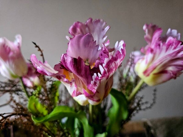 Wauw! Deze parrot tulpen XL zijn werkelijk prachtig, net even wat anders de standaard tulp. In een bos zitten 6 stelen met verschillende tinten paars. Een stengel is 50 cm lang. Exclusief bruinte takken.